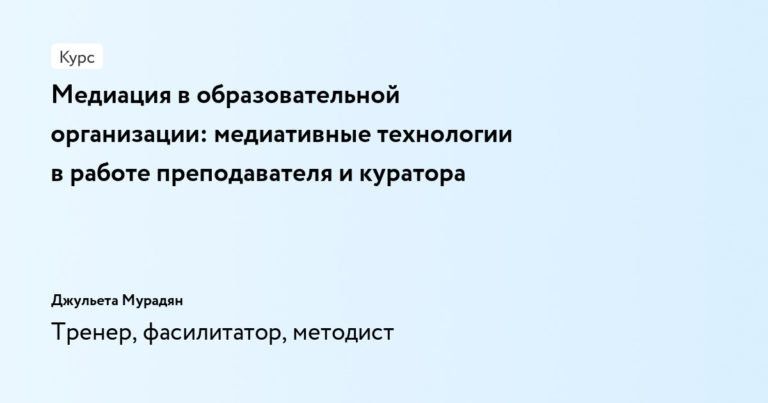 Медиация в образовательной организации: медиативные технологии в работе преподавателя и куратора